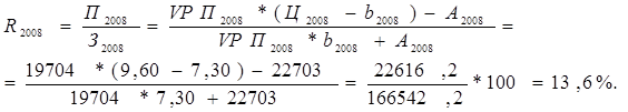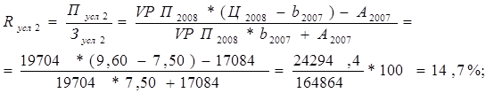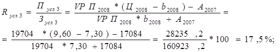 ∆ Р = Р1 – Р0 = 3,5 – (-3,8) = 7,3%; ∆ Рц = Русл – Р0 = 18,2 – (-3,8) = 22%; ∆ Рс = Р1 – Русл = 3,5 – 18,2 = -14,7%. Проверка: ∆ Рц + ∆ Рс = ∆ Р (+22) + (-14,7) = 7,3 План по уровню рентабельности хозпитьевой воды перевыполнен в целом на 8,7%. За счет повышения цены он возрос на 12,3%. Из-за повышения себестоимости уровень рентабельности снизился на 3,6%. План по уровню рентабельности сточных вод перевыполнен в целом на 7,3%. За счет повышения цены он возрос на 22%. Из-за повышения себестоимости уровень рентабельности снизился на 14,7%. Данные таблицы 2.7 показали, что выпускаемая продукция данного предприятия являются рентабельными. Наиболее высокий уровень рентабельности услуг составляет в 2008 году. Это говорит о том, что при реализации данных услуг была получена максимально возможная сумма прибыли, что отразилось на увеличении уровня рентабельности. Аналогично, проводится факторный анализ рентабельности продаж по каждому виду услуг. По данным таблицы 2.7 рассчитаем влияние факторов на изменение уровня рентабельности способом цепных подстановок: - хозпитьевой воды