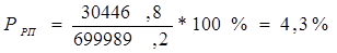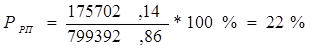 где Прп – прибыль от реализации продукции; Срп – полная себестоимость реализации продукции (товаров); Ур – управленческие расходы. Эффективность основной деятельности предприятия по производству и реализации товаров, работ и услуг характеризуется показателем рентабельности продукции. Этот показатель может быть широко использован в аналитических целях, так как позволяет производить расчеты, соотнося различные показатели прибыли с различными показателями затрат на продукцию. Кроме того, на основе показателей рентабельности продукции можно проводить внутризаводские и межзаводские сравнения, как по общему объему продукции, так и по отдельным их видам [20, с.154]. Рентабельность продукции показывает, сколько прибыли приходится на единицу реализованной продукции. Рост данного показателя является следствием роста цен при постоянных затратах на производство реализованной продукции (работ, услуг) или снижения затрат на производство при постоянных ценах, то есть о снижении спроса на продукцию предприятия, а также более быстрым ростом цен чем затрат. Показатель рентабельности продукции включает в себя следующие показатели: - рентабельность реализованной продукции РРП , представляющую собой отношение прибыли от реализации продукции на полную себестоимость реализации продукции. Она показывает сколько прибыли от реализации продукции приходится на один рубль полных затрат и рассчитывается по формуле: