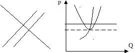 Q2’ Характер бюджетного ограничения. Янош Корнаи ввел понятие жесткого, полужесткого, гибкого ограничения ресурсов: Жесткое ограничение – невозможность влиять на цены товаров и ресурсов; жесткая налоговая система. Это означает, что налоги одинаковые во всех фирмах. Отсутствие безвозмездной поддержки со стороны государства. Невозможность получения кредита, т.е. единственный источник средств – собственный доход. Полужесткое ограничение – ограниченная способность воздействовать на цены ресурсов и товаров. Кредиты можно получить только на жестких условиях (кредитование под залог). Гибкое ограничение – (мягкое) безвозмездная поддержка со стороны государства. Мягкая налоговая система. Способность в широких пределах влиять на цены товаров и ресурсов. Мягкие бюджетные ограничения выражаются в том, что фирма не строго ограничена своей единственной бюджетной линией. Теория спроса и предложения Рынок институт, или механизм, сводящий вместе покупателей (предъявителей спроса) и продавцов (поставщиков) отдельных товаров и услуг. механизм распределения ограниченных ресурсов Факторы, влияющие на цену товара: влияющие на спрос влияющие на предложение Спрос Объем спроса – макс. кол-во товара, кот. готовы купить потребители в ед. времени при определенных условиях Функция спроса – зависимость спроса от разных факторов Qd=f(PA, PB, PC, Taste, Income, Taxes, Expects,…) – функция спроса PA=f(QdA) – функция цены от объема спроса Закон спроса – отрицательная обратная связь цены и объема спроса Цена спроса – макс. цена, которую готовы уплатить покупатели за опр. кол-во товара при опр. условиях. Спрос: индивидуальный рыночный (горизонтальная сумма индивидуальных) Теоретические подходы к определению спроса КОЛИЧЕСТВЕННЫЙ – основан на измерении полезности и выражении ее в цене Полезность – способность удовлетворять потребности Функция спроса основана на принципе убывающей предельной полезности: ПОРЯДКОВЫЙ ПОДХОД – основан на построении кривых безразличия Линия безразличия – физич. предпочтения отд. покупателей Аксиомы пор. подхода: всеобщ. упорядоченность – каждый субъект способен устанавливать соотношение безразличия или предпочтения между наборами благ транзитивность – если один набор предпочтительней второго, а второй–третьего, то первый предпочтительней третьего ненасыщенность – все точки на графике можно отнести к какой-либо кривой безразличия Y=I/Py – Px/PyX – бюджетная линия MRSxy=-Y/X – пред. норма замещения MRS=0 – абс.дополняемые товары MRS=const – абс. заменяемые товары линия безразличия бюджетная линия Свойства линий безразличия: не пересекаются чем дальше кривая от 0, тем наборы предпочтительнее линии имеют отриц наклон выпуклы к началу координат через каждую точку на графике можно провести только 1 кривую П P2>P1>P0 MRSxy= – Px/Py –условие равновесия – построение кривой индивидуального спроса Предложение Объем предложения – макс. кол-во товара, кот. готовы продать производители в ед. времени при определенных условиях Функция предложения – зависимость спроса от разных факторов Qs=f(PA, PB, PC, Resources, Taxes, Expects,…) – функция спроса PA=f(QsA) – функция цены от объема предложения Закон предложения – положительная зависимость цены и объема спроса Цена предложения – мин. цена, за которую производители готовы продать опр. кол-во товара при опр. условиях. Рын. равновесие 