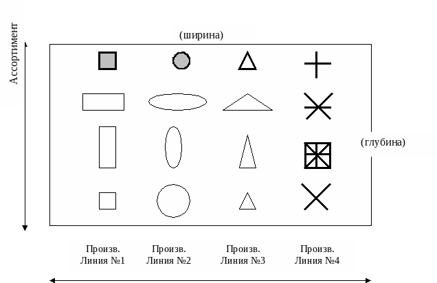 Номенклатура Основные методы организации планирования ассортимента: Метод «снизу вверх». Как правило, главными инициаторами являются отделы маркетинга и исследований и разработок. При этом методе основную роль играют опыт и интуиция служащих. Метод «сверху вниз». Планирование ассортимента и регулярные изменения его являются интегральной частью общей стратегии деятельности предприятия. Смешанный метод, при котором служащие всех подразделений предприятия стимулируются руководством к инициативе в отношении изменения ассортимента в рамках общего плана компании. Метод планирования ассортимента, базирующийся на том, какие мотивы лежат в основе принятия решений по изменению ассортимента. Жизненный цикл товара и товарная политика фирмы. Каждый продукт имеет сой жизненный цикл. Раньше или позже спрос на данный продукт (в той форме, в которой он первоначально был представлен на рынок) начинает падать. Отношения продолжительности каждой фазы ко всему жизненному циклу различается для каждого вида продукта: фаза может продолжаться как недели, так и десятилетия и, даже, столетия. Первая стадия убыточность сбыта привлечение потребителей с выраженной инновационной установкой ограниченная конкуренция на рынке выпуск только основной модификацией продукта выбор цен, покрывающих издержки производства создание разрозненной, выборочной сети реализации настойчивое продвижением товара на рынок. Цель маркетинга на первой стадии – ознакомление со свойствами товара и пробный выход на рынок. Вторая стадиярезкий рост объема продаж снижение издержек на одного покупателя и, как следствие, достижением все возрастающих прибылей ориентацией на «прогрессивных» потребителей рост числа конкурентов введение широкого круга модификаций базового продукта установление цен на уровне, необходимом для проникновения на рынок организация интенсивной сети распределения продукции ознакомление с параметрами изделия массового рынка и некоторым ослаблением настойчивости в продвижении товаров в условиях возросшего покупательского спроса стратегия максимизации рыночной доли. Третья стадиявыход на пиковый объем продаж снижение издержек в расчете на одного покупателя обеспечение высокой прибыли ориентация на большинство потребителей стабилизация и даже сокращением числа конкурентов разнообразие моделей и товарных модификаций ценовая политика, всецело определяющейся условиями конкурентной борьбы, дальнейшей интенсификацией распределительной сети, упором в рекламе на достоинства и отличительные параметры товара, усилением внимания к продвижению товаров, необходимым для поощрения «переключения» спроса в рамках данной группы товарного ассортимента. Стратегия на этом этапе заключается в максимизации прибыли с защитой доли рынка. Четвертой стадиипадение объемов продаж низкие издержки производства в расчете на потребителя снижающиеся прибыли сужение контингента покупателей устранение с рынка наименее популярных моделей снижение цен ликвидация неприбыльных каналов сбыта ограничение рекламы минимальным уровнем сведение к минимуму мер по продвижению. С Объем продаж