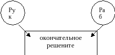 Принятие решений в менеджменте. Принятие решений – основная функция управления; она пронизывает организацию сверху вниз. Решения: Организационные (ведущие к изменениям в работе подразделений) Волевые, подкрепл. полномочиями и властями Волевые, не подкрепл. полномочиями и властями Запрограммированные (жесткосвязанные с предыдущими решениями или техническими операциями исполнения) Рациональные или нерациональные. Рациональное решение – решение, принятое на основе анализа и прогноза. Решения могут приниматься: В условиях риска, когда вероятность этого риска известна; В условиях риска, когда вероятность этого риска не известна. Пример: I. Имеется 3 альтернативы (виды товаров и т.п.): А1 4 5 П= А2 3 1 А3 1 4 p1, p2 – вероятности выполнения условия; p1=0,7, p2=0,3. 1условие – инфляция возрастает. 2 условие – инфляция падает. Какова эффективность (А1, А2, А3) при (р1, р2) по 5-бальной системе? Расчет показателей: Е1=4*0,7+5*0,3=4,3 Е2=3*0,7+1*0,3=2,4 Е3=1*0,7+4*0,3=1,9 Выбираем максимальный, следовательно, 1 альтернатива максимальна. II. Предположим, что вероятности условий не известны (или по 0,5). В этой ситуации используются критерии из теории игр: правило оптимиста или правило азартного игрока правило консервативного игрока или пессимиста правило Гурвица (аддетивная комбинация оптимиста и пессимиста) правило Лапласа. Правило оптимиста:Оно используется, когда рискуешь не последний. max max (aij) j i В каждой строке матрицы ищется максимальный элемент. Из выбранных максимальных выбирается максимальный. Правило пессимиста:Его целесообразно использовать в случае необходимости страховки. Игрок страхует себя от высоких потерь. Возможны 2 варианта: Maxmin аij (уходим от наихудшего минимального элемента). Minmax аij (уходим от наихудшего максимального элемента) Правило Гурвица: j i j i Пусть пессимист=0,2 Правило Лапласа:Для каждой строчки матрицы вычисляется средний бал. Из вычисленных средних выбираем максимальный Методы принятия решений также могут быть: Чисто автократичными (принимаю решение только сам, слушаю только себя). Автократичное с предварительной консультацией специалиста. Автократичное с предварительным обсуждением в коллективе. Коллегиальные (принимается решение по большинству голосов. Руководитель подтверждает). Строго математический (с использованием теорий игр, теории вероятностей и строго детерминирован). На основе экспертных оценок. На основе «мозгового штурма»(«мозговой атаки»). Алгоритм : ставится проблема; приглашаются генераторы идей; «выгоняют». Приглашают критиков; приглашается группа независимых экспертов. После чего приходят к единому решению. Наиболее сложно принимать решение в условиях ограниченного времени, когда не известны влияющие факторы и их природа. Когда негативные тенденции в организации начинают стремительно возрастать, очень важно дождаться некоторой стабильности обстановки в организации и только после этого принимать решение. Управленческое решение должно быть принято всегда вовремя. Иногда скорость реагирования на изменение ситуации входит в противоречие с рациональностью принятия решения. Искусство руководителя и заключается в быстром и качественном разрешении этого противоречия. М етоды, принципы и функции менеджмента Механизм управления организацией включает четыре элемента: Принципы управления Под принципами управления поним