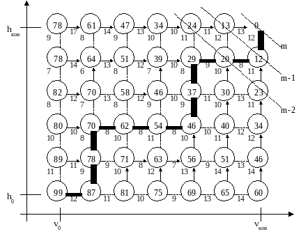 Получаем минимум: 39 Примеры использования задачи о назначениях: Оптимальное использование торговых агентов. Динамическое программирование. Очень часто в экономических задачах приходится принимать решение поэтапно, шаг за шагом, а не дискретно и разово, как например в задачах ЛП. В этом случае применяют так называемое динамическое программирование (ДП). Метод ДП основан на принципе оптимальности Беллмана и бал впервые опубликован в начале 60-х годов. Принцип заключается в том, что каково бы ни было состояние системы s в результате какого-либо числа шагов, мы должны выбрать управление на ближайшем шаге так, чтобы в совокупности с оптимальным управлением на всех последующих шагах оно приводило к максимальному выигрышу на всех шагах, включая данный. V0 – начальная скорость, h0 – начальная высота. С Для простоты будем считать, что: интервалы скорости и высот разбиты на равные части, и самолет может на каждом отдельном разбиении набирать либо скорость, либо высоту. Считаем известным расход горючего при изменении скорости «на одну клетку» и изменении высоты «на одну клетку». Необходимо найти такую траекторию движения, что суммарный расход горючего наименьший. Понятно, что суммарный расход горючего определяется сложением соответствующих расходов при движении по некоторой траектории Таким образом, целевая функция является аддитивной. Если есть аддитивность, то есть ДП и если нет аддитивности, то нет и ДП. Самым важным в ДП является этапирование процесса. ДП состоит из двух частей: обратного хода и прямого хода. Процесс рассматривается с последнего шага. Для каждой точки определенного этапа выявляется условное оптимальное управление, которое вместе с оптимальным управлением на последующих шагах даст наилучшее значение критерия. Теперь осуществляется прямой ход. Начав движение с начальной точки (v0, h0) мы должны двигаться на каждом отрезке по условно оптимальным направлениям, выявляя оптимальную траекторию. Такой путь – единственный. В ДП условно оптимальное управление часто выбирается из так называемой «розы направлений». Пусть W – показатель эффективности всего процесса и пусть i – показатель эффективности на i-ом шаге. Аддитивность критерия будет означать W = i . Пусть Хi – переменная, от которой зависит выигрыш на i-ом шаге (управление). В нашей задаче это были «вправо-вверх». При выборе шагового управления необходимо учитывать возможные исходы предыдущего и влияние выбираемого управления на все оставшиеся до конца процесса. Пусть S – состояние системы (у нас это были 2 координаты: vi и hi). С введенными обозначениями тесно связано само состояние математической модели. Всего можно выделить 7 этапов: Разбиение задачи на шаги (шаг не должен быть слишком крупным, но и не следует мельчить. При уточнении возможно дробление шага.) Выбор переменных, характеризующих состояние s перед каждым шагом. (прибыль, остаток средств и т.п.). Определение множества шаговых управлений xi и налагаемых на них ограничений. Определение выигрыша i (si, xi), который принесет управление xi при состоянии системы si. Определение состояния s’, в которое переходит система из состояния s под действием управления xi, т.е. s’ = f(Si, Xi), где f – функция перехода. Составление уравнения, определяющего условный оптимальный выигрыш на последнем шаге для состояния s моделируемого проц