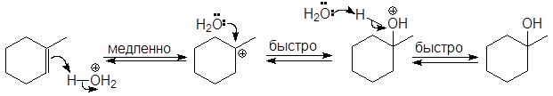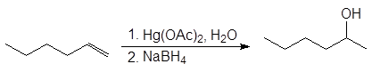 Для получения других спиртов этот метод имеет весьма ограниченную область применения, поскольку гидратация алкенов часто сопровождается изомеризацией углеродного скелета за счет перегруппировок промежуточно образующихся карбокатионов, что сильно снижает синтетические возможности этого, на первый взгляд очень простого, способа получения вторичных и третичных спиртов. В лабораторной практике его по существу вытеснил другой способ, основанный на реакции оксимеркурирования-демеркурирования алкенов. Оксимеркурирование-демеркурирование региоселективно и приводит к присоединению воды по правилу Марковникова. Эта реакция проводится в оченьмягких условиях с выходами, близкими к количественному выходу.