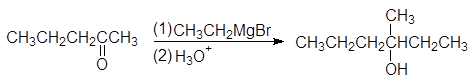 бензальдегид 1-фенил-1-пропанол Для получения третичных спиртов используют или кетоны или сложные эфиры. При использовании кетонов можно получать третичные спирты любого строения, а при использовании сложных эфиров - спирты с двумя одинаковыми частями молекул: 2-пентанон 3-метил-3-гексанол