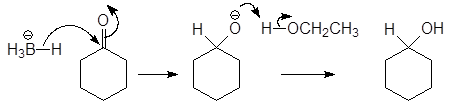 Для восстановления в спирты альдегидов и кетонов лучше всего пользоваться боргидридом натрия. Эту реакцию можно проводить в спирте или даже в воде. Реакция восстановления циклогексанона