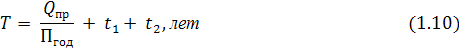 где t 1 , t 2 – соответственно время на развитие и затухание работ (1,5 – 2 года); П год – годовая производительность мощность карьера по добыче, т (4000000 т/г )