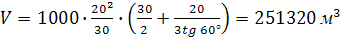 где b – ширина траншеи по низу, принимаем 30 м ; Н т – глубина траншеи, м ; α – угол откоса борта траншеи, 60˚; β – угол откоса отвала, 37˚. Объем отвала: