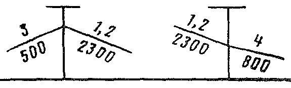 Если приемо-отправочные пути оборудованы рельсовыми цепями (при ЭЦ), предельные столбики ставятся в соответствии с приложением 1, табл. 1. Если пути не оборудованы электрическими рельсовыми цепями (при ручном обслуживании стрелочных переводов), предельные столбики устанавливаются согласно приложению 1, табл. 2. Входные светофоры устанавливают при тепловозной тяге не ближе 50 м От остряка первой противошерстной стрелки или от предельного столбика первой пошерстной стрелки. При электрической тяге они ставятся на 200 - 300 м от тех же точек. Это вызвано устройством воздушного промежутка между контактной сетью перегона и станции, который требует некоторого расстояния. Входной светофор должен размещаться перед этим воздушным промежутком, чтобы остановившийся перед входным светофором электровоз не замкнул контактную сеть перегона и станции, когда на перегоне выполняется ремонт контактной сети. Входные светофоры нумеруют заглавной буквой Ч или Н. Выходные светофоры устанавливают: при противошерстной стрелке - напротив изолирующего стыка пли стыка рамного рельса; при пошерстной стрелке: если выходной светофор и предельный столбик находятся в одном междупутье, то светофор ставится от центра стрелочного перевода согласно приложению 1, табл. 3; если они находятся в разных междупутьях, то на расстоянии 3,5 м от предельного столбика. Выходные сигналы нумеруют заглавной буквой Ч или Н с цифровым индексом, обозначающим номер пути. Стрелочные узлы рассчитываются согласно приложению 2 (определяются расстояния между центрами соседних стрелочных переводов).