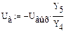 Равенство токов обеспечивается тем, что операционный усилитель не потребляет тока. Ток I4 протекает через проводимость Y4 и втекает в ветвь с проводимостью Y5 без потерь.Выразим токи в ветвях через проводимости.