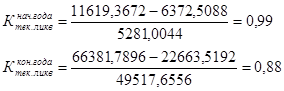 Из анализа видно, что повышение значения Z1 от –1,8 до –0,94 свидетельствует о нормальном режиме работы в начале года и ухудшении положения в конце года.
