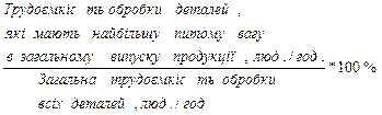 – коефіцієнт інтенсивності навантаження обладнання = (фактично відпущена продукція за одиницю часу / на максимально можливий випуск продукції за одиницю часу) / на одиницю обладнання;