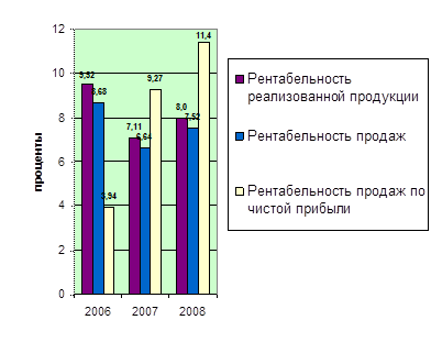 Рентабельность продукции предприятия за 2006–2008 года приведена на диаграмме (рис. 7).