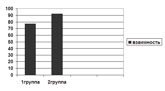 Наличие в контрольной группе высокостатусных детей и соответственно положительной социовалентности мы интерпретируем с точки зрения особенностей развития. Дети с нарушениями интеллекта имеют поведенческие расстройства, эмоционально расторможены, отсюда дети чаще идут на нарушение социальных норм ради привлечения внимания к себе и завоевания друзей; у них чаще проявляется негативизм в отношениях; снижена контактность и общительность; они менее сдержаны в поведении. Взаимность контактов-важный социально-психологический, по которому учитель судит о наличии отношений взаимного расположения-нерасположения. Уровень положительной взаимности коллективных отношений отражает психологическую совместимость детей в классе, наличие развитых дружеских отношений. Так, в исследованных нами классах взаимность распределилась следующим образом (гист.2). Гистограмма 2