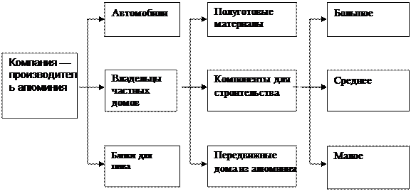 Рисунок 1 - Фрагмент результатов последовательной трехступенчатой сегментации рынка потребителей алюминия. 2 МЕТОДЫ СЕГМЕНТАЦИИ РЫНКАКакого-то единого метода сегментирования рынка не существует. Деятелю рынка необходимо опробовать варианты сегментирования на основе разных переменных параметров, одного или нескольких сразу, в попытках отыскать наиболее полезный подход к рассмотрении структуры рынка. Однако, наиболее распространенными методами сегментирования рынка являются: · метод группировок по одному или нескольким признакам и · методы многомерного статистического анализа. Метод группировок состоит в последовательной разбивке совокупности объектов на группы по наиболее значимым признакам. Какой-либо признак выделяется в качестве системообразующего критерия (владелец товара, потребитель, намеревающийся приобрести товар), затем формируются подгруппы, в которых значимость этого критерия значительно выше, чем по всей совокупности потенциальных потребителей данного товара. Путем последовательных разбивок на две части выборка делится на ряд подгрупп.