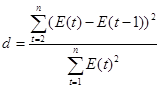 Для данного ряда количество таких точек k = 5. Это больше 2, поэтому остатки E(t) случайные. в) Проверка остатков E(t) на независимость. Независимость (отсутствие автокорреляции) проверим, используя критерий Дарбина-Уотсона: