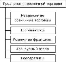 Многие магазины принадлежат независимым владельцам, однако, все большее их число относится к одной из форм корпоративной розничной торговли. Такие организации во многом используют эффект масштаба. Основные типы организаций, занимающихся розничной торговли, представлены в таблице 2.1.