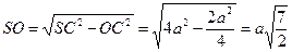 Нехай SABCD – задана правильна піраміда, в основі якої лежить квадрат ABCD, і SO її висота. Позначимо сторону основи АВ через а , тоді бічне ребро SA = 2a . У трикутнику SDC