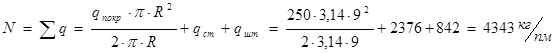 где Сила трения (Qтр ) определяется для двух расчётных случаев. 1. Резервуар не засыпан грунтом (с жидкостью). 2. Резервуар засыпан грунтом (без жидкости). Случай 1Нагрузки: - от веса покрытия: