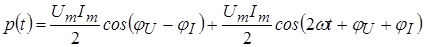 При согласном выборе направлений отсчета напряжения и тока мгновенная мощность в этой цепи определяется выражением: