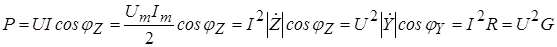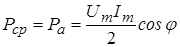 U и I – называют действующими (эффективными) значениями напряжения и тока ГК. Если перейти от амплитуд колебаний к их действующим значениям, то для средней мощности потребляемой пассивным двухполюсником находится типовое выражение: