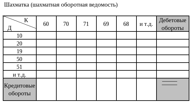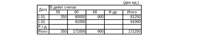 Главная книга — совокупность бухгалтерских счетов, открываемых в организации в течение отчетного периода; основная часть бухгалтерской информационной системы, в которой отражаются все объекты бухгалтерского наблюдения, обеспечивающие производственно-хозяйственную и финансовую деятельность (активы, капитал и пассивы), и объекты, ее составляющие (хозяйственные и финансовые процессы и их результаты), а также последствия свершившихся фактов хозяйственной жизни. Главная книга как этап процедуры бухгалтерского учета тоже относится к механическим этапам - это перенос хозяйственных фактов из журнала регистрации на счета Главной книги. Цель этапа — систематизировать бухгалтерские записи (отразить системно), ранее зарегистрированные в хронологическом порядке. В конце отчетного периода по всем счетам Главной книги подсчитываются обороты (сумма всех показателей по дебетовой или кредитовой стороне) и выводится предварительный показатель конечного сальдо. Бессальдовые счета (временные, переменные или транзитные) закрываются, их обороты по дебету и кредиту обязательно равны, сальдо отсутствует. В российском учете в качестве пробного баланса применяется оборотная ведомость. Контрольное значение оборотной ведомости в российском учете. Оборотная ведомость впервые предложена Ж. Савари и применена в новоитальянской форме счетоводства (Ф. Гаратга, 1688 г.). В отличие от простейшего пробного баланса, состоящего из двух граф (сальдо конечное по дебету и сальдо конечное по кредиту) и реализующего второй постулат Л. Пачоли, эта оборотная ведомость представляет форму статико-динамического баланса, предусматривающего шесть граф и направленного, по замыслу Ж. Савари, на использование контрольных возможностей первого и второго постулатов двойной записи. Однако истинное преимущество оборотной ведомости проявилось намного позже, когда в 1803 г. А. Мендес обосновал постулат, подтверждающий важность и равнозначность как хронологической записи (по журналу регистрации), так и систематической записи (на счетах Главной книги). Таблица 10.2 – Оборотная ведомость синтетического учета