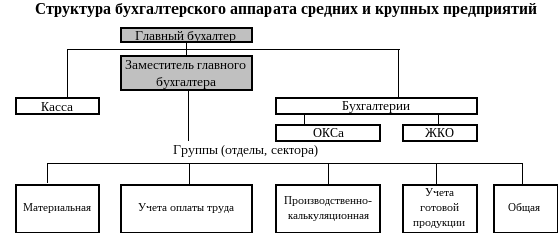 5 Тема 8: Организация бухгалтерского учета. 8.1. Организация бухгалтерского учета на предприятиях. 1 8.2. Права, обязанности и ответственность главного бухгалтера. 2 8.1. Организация бухгалтерского учета на предприятиях. Бухгалтерский учет должен быть организованс соблюдением единых правовых и методологических основ постановки и его ведения, установленных Федеральным законом России “О бухгалтерском учете” от 21.11.96 г. № 129-ФЗ, другими Федеральными законами, Указами Президента Российской Федерации, постановлениями Правительства РФ, а также Положением по ведению бухгалтерского учета и бухгалтерской отчетности, утвержденным Приказом Минфина РФ от 27.07.98 г. № 34-н. Положение, названное последним, определяет порядок ведения учета и представления бухгалтерской отчетности всеми юридическими лицами (за исключением банков), начиная с 1 января 1999 г. Ст. 6 Федерального закона“О бухгалтерском учете” предусмотрено,что ответственность за организацию бухгалтерского учета несут руководители. В зависимости от объема учетной работы онимогут: •учредить бухгалтерскую службу как структурное подразделение, возглавляемое главным бухгалтером; •ввести в штат должность бухгалтера; •передать на договорных началах ведение бухгалтерского учета централизованной бухгалтерии, специализированной организации или бухгалтеру-специалисту; •вести бухгалтерский учет лично. Деятельность бухгалтерского аппарата определяется Положением о бухгалтерском учете и отчетности, в соответствии с которым бухгалтерия является самостоятельным структурным подразделением (службой) предприятия. Структура бухгалтерского аппарата зависит в основном от условий организации и технологии производства, объума учетной работы и наличия технических средств учета. Схема 7.1. Материальная группа отвечает за приобретение материальных ценностей, их поступление и расходование. В этой же группе, как правило, ведут учет ОС и МБП. Группа учета оплаты труда осуществляет учет затрат труда рабочих, исчисление заработной платы работникам, контроль за использованием фонда оплаты труда, учет всех расчетов с работниками предприятий, бюджетом, ФСС и другими ведомствами, связанными с оплатой труда. Производственно-калькуляционная группа ведет учет затрат на производство, калькулирует себестоимость продукции, выявляет результаты внутрихозяйственного хозрасчета, составляет отчетность о производстве. Группа учета готовой продукции осуществляет учет готовой продукции на складах и ее реализации. Общая группа ведет учет остальных операций и Главную книгу, составляют бухгалтерский баланс и другие формы финансовой отчетности. Кроме того, в состав бухгалтерии входят группы (отделы) капитального строительства (ОКСа) и жилищно-коммунального хозяйства (ЖКО) 8.2. Права, обязанности и ответственность главного бухгалтера. В соответствии со ст. 7 Федерального закона “О бухгалтерском учете” главный бухгалтер(бухгалтер при отсутствии в штате должности главного бухгалтера) назначается на должность и освобождается от нее руководителем организации. Главный бухгалтер подчиняетсянепосредственно руководителю организации и несет ответственность за формирование учетной политики, ведение бухгалтерского учета, своевременное представление полной и достоверной бухгалтерское отчетности. Он обе
