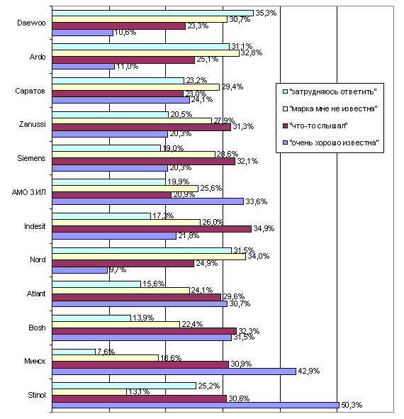 Диаграмма 4. Рейтинг известности марок холодильников среди всех респондентов