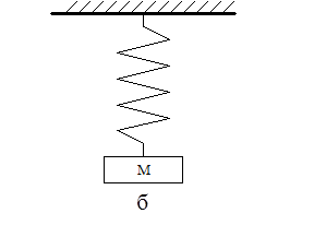 Рис.1.8. Грузы на пружинах. Пусть массы пружин пренебрежимо малы по сравнению с массами грузов. Грузы рассматриваются как материальные точки. Сначала рассмотрим систему, изображенную на рис.18. а. Предположим, что первоначально груз был смещен влево и, как следствие пружина растянулась. При этом на груз (материальную точку) действуют 3 силы: сила тяжести mg, сила упругости F и сила нормальной реакции опоры N. Трением в данной задаче мы пренебрегаем (см. рис.1.9).