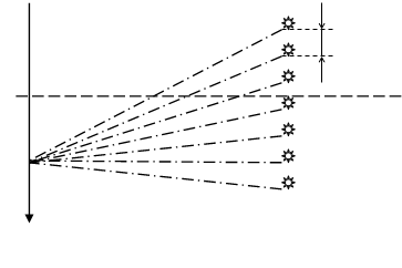 Рис.3.3. Геометрия системы n источников. Цифрами 1,2,3,4,…,n обозначены положения точечных источников. Ось X направлена вдоль линии перемещения детектора. Где Z1 ,Z2 , Z3 , Z4 ,…, Zn , – расстояния от первого, второго, третьего, …, энного источников до приёмника, вдоль оси X происходит сложение интенсивностей колебаний, L – расстояние от оси X до линии соединяющей источники. Для того чтобы найти интенсивность n источников, используем соотношение (3.10). Амплитуды сложим векторным способом. Тогда для n источников функция (3.10) примет вид: