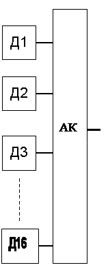 Каждая схема АК содержит 16 датчиков. Они опрашиваются поочередно и в результате на выход системы подключается тот датчик где скорость изменения данных выше. В системе получается 32схем АК. Тогда сигнал с выхода АК будет иметь следующий вид: