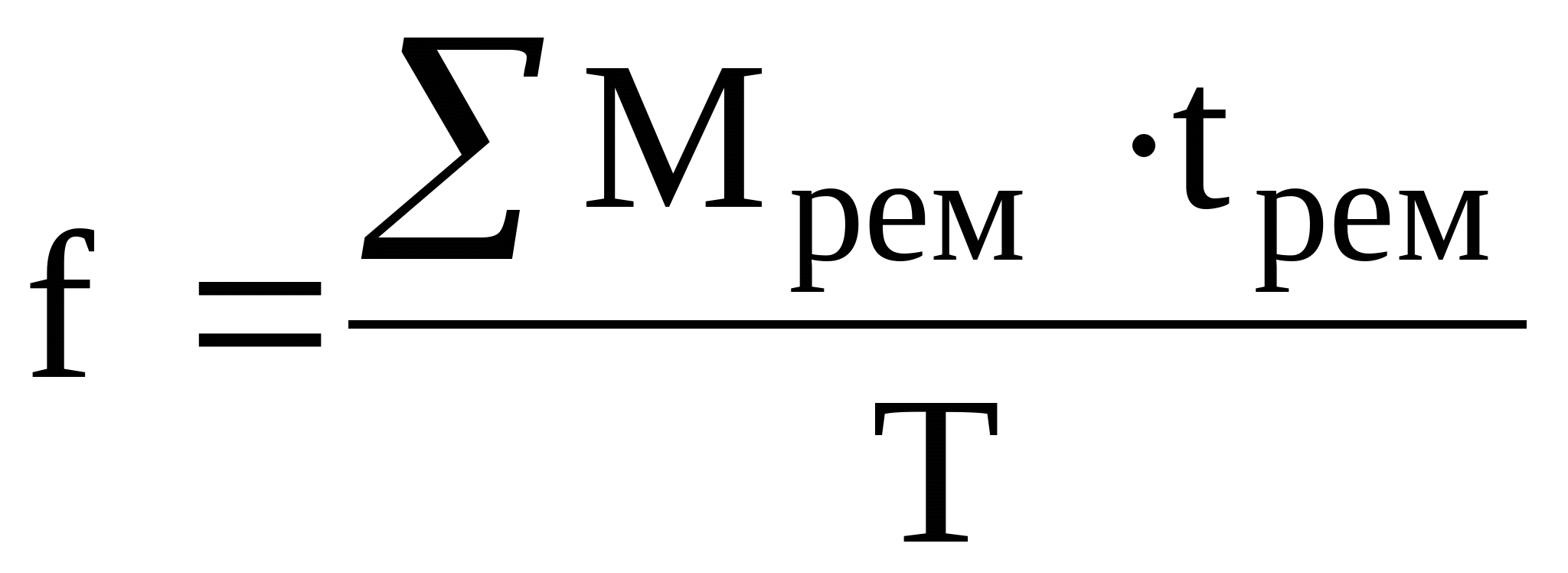где Мрем - годовая программа заводского ремонта локомотивов; tрем - простой в ремонте суток; Т - количество календарных суток в расчетном периоде - за год, сут.