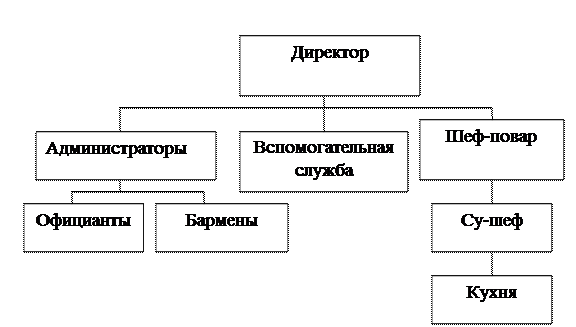 Схема. 1«Организационная структура ресторана» По этой схеме каждый руководитель службы, с одной стороны, решает все профессиональные вопросы самостоятельно или с первым лицом и, с другой стороны, взаимодействует с коллегами параллельных служб самостоятельно, не пересекаясь в решении одних и тех же вопросов. Руководство деятельностью предприятия будет осуществлять директор. Директор – является материально-ответственным лицом, он действует от имени предприятия, представляет его интересы во всех предприятиях различных форм собственности. Шеф-повар является также заведующим производством и осуществляет руководство кухней, ему подчиняются повара, мойщики посуды. Администратор осуществляет контроль за работой официантов, горничных. Вспомогательная служба включает в себя машинистов по стирке белья, монтажников сан.тех.систем и оборудования, эл.монтеров, дворников. Количество человек работающих на предприятии 15. Так как ресторан относится к сфере обслуживания, то график работы с 11.00 до 24.00. Таким образом, режим работы: 1. Барменов и официантов, устанавливается на час раньше с 10.00-24.00 для подготовки зала к обслуживанию, два через два, с перерывом на обед (1 час). 2. Поваров два через два с 11.00-24.00 3. Режим работы административно-управленческого персонала с 11.00 до 19.00 с перерывом на обед пять дней в неделю. Дни выхода на работу учитываются в табеле учета рабочего времени. Время отдыха устанавливается следующее: - перерыв для отдыха и питания с 13-00 до 14-00, - выходные и праздничные дни – в соответствии с ТК РФ, - ежегодный оплачиваемый отдых в соответствии с ТК РФ, - по семейным обстоятельствам и другим уважительным причинам работнику по его письменному заявлению может быть предоставлен отпуск без сохранения заработной платы, продолжительность которого определяется по соглашению между работником и работодателем. Подбор персонала осуществляется отделом по развитию и подбору персонала. Претенденты проходят собеседование, обучение и стажировку в ресторане. После этого их зачисляют в штат. 3.2. Анализ системы мотивации в ресторане «Ля Гурме» Мотивация - это процесс такой ориентации побудительных стимулов работника, при которой он стремится к долгожданной цели организации, причем в моей организации мотивация играет огромную роль. Безусловно, наиболее важным мотиватором являются материальные поощрения, такие как премии, повышение заработной платы. Личная премия - вознаграждения, поощряющие высокие индивидуальные заслуги работника в деле решения стратегических и тактических задач предприятия (достижение более высоких индивидуальных результатов, вклад в увеличение объемов реализуемой продукции и т.п.). Система поощрений работников ресторана Таблица 1