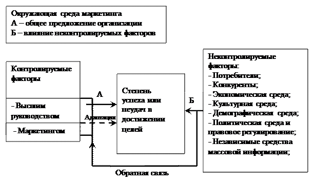 Организационные преобразования могут осуществляться в разрезе двух видов трансформаций. Первые отличает незначительная амплитуда изменений, имеющих целью повышение эффективности использования ресурсов и адаптации к условиям внешней среды и стратегическим планам предприятия. Пошаговые модификации отдельных компонентов системы направлены на совершенствование производственных, вспомогательных и административно-управленческих процессов. Не изменяя исходного качества, данные процессы являются составной частью цепочки повышения рентабельности производства, материально-технического обеспечения, исследования и разработок [4]. Часто такие организационные изменения называют стратегическим дрейфом, настройкой, приспособлением. Изменения второго уровня относятся к сложным проблемам, носят ключевой стратегический характер. Используемый инструментарий вместо базовых элементов требует интегрированных организационных концепций, включающих сегментирование хозяйственной деятельности, концепцию центров прибыли, реинжиринг процессов, реструктурирование основного производства, развитие фирменной культуры и др. Организационные изменения такого уровня сопряжены с реструктуризацией, переориентацией и перестройкой деятельности предприятия. 6. Информационное обеспечение в системе маркетингаПринятие правильных решений предполагает наличие соответствующей информации. Маркетинговую информационную систему (МИС) определяют как совокупность приемов, методов, организационных мер и технических средств для сбора, накопления и обработки данных, необходимых для осуществления маркетинговой деятельности предприятия. 7. Маркетинговая среда представляет собой совокупность "не поддающихся контролю " сил, с учетом которых фирмы и должны разрабатывать свои комплексы маркетинга. Маркетинговая среда фирмы – совокупность активных субъектов и сил, действующих за пределами фирмы и влияющих на возможность руководства службой маркетинга устанавливать и поддерживать с целевыми клиентами отношения успешного сотрудничества.
