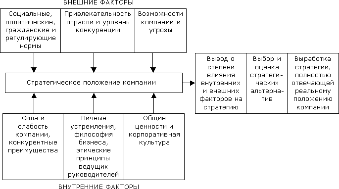 Наконец, стратегия и ориентиры взаимозаменяемы как в отдельные моменты, так и на различных уровнях организации. Некоторые параметры эффективности (например, доля рынка) в один момент могут служить фирме ориентирами, а в другой – станут ее стратегией. Далее, поскольку ориентиры и стратегии вырабатываются внутри организации, возникает типичная иерархия: то, что на верхних уровнях управления является элементами стратегии, на нижних превращается в ориентиры. Стратегия в компании разрабатывается и реализуется на всех уровнях управления: