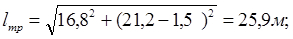 Gтр( колонн) =10,4+0,333=10,7 (траверса унифицированная) Gтр( колона ср.) =11,8+0,333=12,1 (траверса унифицированная) Gтр( подкр.балка) =10,7+0,475=11,2 (траверса) Gтр (ферма) =18,6+0,99=19,59 (траверса) Gтр (плита) =7+1,08=8,08 Определение вылета прямой стрелы при укладке плит покрытия Требуемый вылет крюка определяется по условиям установки плиты. Расчет ведется в следующей последовательности. Сначала определяют величину угла наклона стрелы, при котором ее длина будет наименьшей