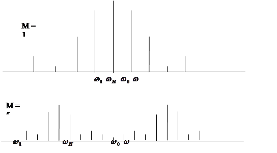 Рисунок 2.3 Спектры сигналов ЧМ при различных индексах модуляции М 3. Расчет вероятности ошибки на выходе приемникаВычислим мощность шума на выходе приемника по формуле:
