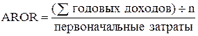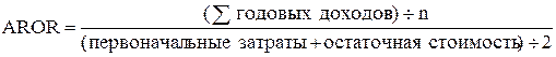 где Pnet – чистая среднегодовая прибыль предприятия после выплаты налогов и процентных платежей; С1 , С2 – стоимость оборудования соответственно на начало и на конец реализации инвестиционного проекта. При оценке инвестиционных проектов расчетную норму прибыли сравнивают с принятой для предприятия нормой прибыли. Проект считается экономически выгодным, если значение показателя превосходит норму прибыли, принятую инвестором. К основным недостаткам расчетной нормы прибыли можно отнести: - расчетная норма прибыли не учитывает изменение стоимости денег во времени. Так как не учитывается различная стоимость денег (прибыли) в зависимости от времени их получения, средняя прибыль рассчитывается за весь период использования инвестиционного проекта, а это в свою очередь, не всегда корректно. - расчетная норма прибыли пренебрегает возможностью разной продолжительности проектов, носит показательный характер. Первоначальный вложенный капитал состоит из затрат на покупку и установку основных средств и увеличение оборотного капитала, требуемого на начальном этапе инвестиций. Однако на последнем этапе осуществления проекта вложенный капитал сокращается до остаточной стоимости оборудования плюс оставшиеся компоненты оборотного капитала. Формула может быть представлена в виде: