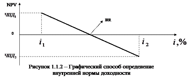 Рисунок 1.– Графическое определение IRR 5 Методом интерполяции находим расчетное значение внутренней нормы доходности по формуле: