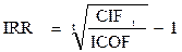 Внутренняя норма доходности (ВНД) (в английской аббревиатуре- IRR) является наиболее сложным из всех показателей с позиции механизма его расчета. Она характеризует уровень доходности конкретного инвестиционного проекта, выражаемый дисконтной ставкой, по которой будущая стоимость денежного потока от инвестиций приводится к настоящей стоимости инвестируемых средств. Внутреннюю норму доходности можно охарактеризовать как дисконтную ставку, при которой чистый приведенный доход в процессе дисконтирования будет приведен к нулю.IRR определяется следующими двумя методами, выбор которого зависит от количества периодов: 1) Для одного периода получения денежного потока IRR рассчитывается по формуле (2.6.):