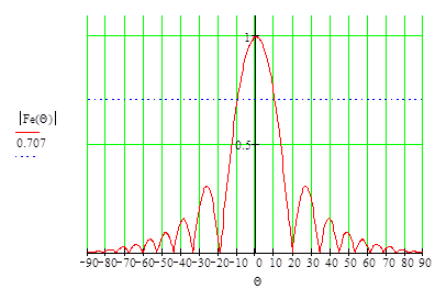 Ширина ДН на уровне половинной мощности определяется выражением: