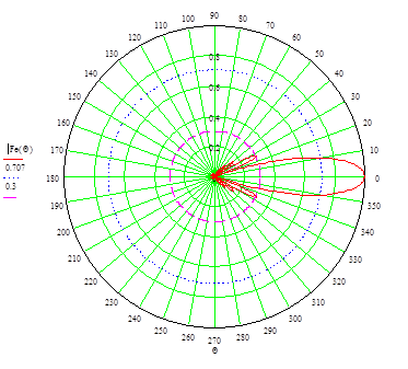 Как было сказано ранее, ДН антенны является произведением ДН одного излучателя на ДН множителя решетки. Соответственно ДН антенны в плоскости Н: