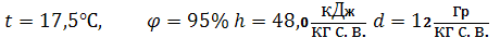 /ч. Расход воздуха в холодный период года меньше, чем теплый период года. Следовательно, в холодный период года кондиционеры должны работать с несколько уменьшенной производительностью. В холодный период к наружному воздуху подмешивается рециркуляционный воздух. Следовательно, процесс обработки воздуха в камере орошения пойдет по h = const (точка C характеризует состояние смеси наружного и внутреннего воздуха перед камерой орошения). Причем содержание наружного воздуха в смеси с рециркуляционным составляет 17 %. Количество наружного воздуха, приходящегося на одного рабочего составляет 4194 м3