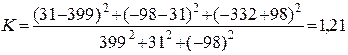 Этот коэффициент принимает значения от +1 (знаки всех отклонений совпадают - прямая связь) до - 1 (знаки всех отклонений не совпадают - обратная связь). Значит, в данном случае мы имеем дело с тесной прямой связью. Для качественной оценки тесноты связи можно воспользоваться следующими соотношениями: