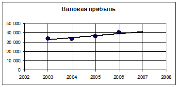 На графике построим линию тренда с прогнозом на 1 год. Валовая прибыль в 2007 году ожидается на уровне 2006 года. Для чистой прибыли: