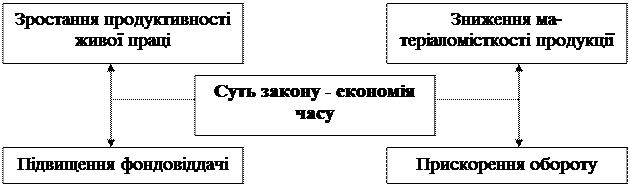 Слід мати на увазі, що категорії явища (тобто форми прояву закону) бувають різної глибини. Так, категорія зарплати більш глибока по відношенню до її форм - погодинної і відрядної, а останні у свою чергу, є більш глибокими по відношенню до конкретних форм організації заробітної плати. А це означає, що необхідно розрізняти, для того щоб найбільш ефективно використовувати економічні закони в своїй господарській діяльності, головні й похідні форми прояву законів. Чим ближче до поверхні життєвих реалій розташовані ті чи інші форми, тим вони різноманітніші, тим більшою мірою виявляється їхній похідний характер і відірваність від сутності закону, залежність від зовнішніх, несуттєвих факторів. На основі цього складається хибне враження, що ці форми існують автономно й формуються під впливом лише зовнішніх, другорядних факторів. Реакція господарюючих суб'єктів у практичній господарській діяльності саме на це хибне враження може привести до прийняття неефективних, а іноді й безперспективних рішень. Співвідношення категорій суті і категорій форми на прикладі закону економії часу.