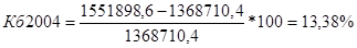 Із розрахунків видно, що темпи приросту майна ВАТ „ДніпроАЗОТ” уповільнилися. 2. Коефіцієнт приросту виручки від реалізації продукції: