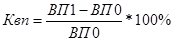Де ВП1, ВП0 – валовий прибуток за звітний і попередній періоди