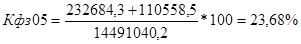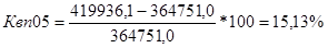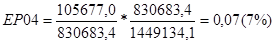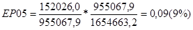 де ЕФВ — ефект фінансового важеля (тобто нарощення рентабельності власного капіталу за рахунок використання позикового капіталу); Коп — коефіцієнт оподаткування прибутку; ЕРа — економічна рентабельність активів (розраховується шляхом відношення операційного прибутку до загального обсягу капіталу, інвестованого в активи підприємства); СП — середня ставка процента за позиковими коштами (або рівень фінансових витрат); ПК — позиковий капітал; ВК — власний капітал. Ефект фінансового важеля складається з двох компонентів: Диференціала (1 – Коп)*(Ера – СП) — різниці між рентабельністю інвестованого капіталу і середньою ставкою процента за позиковими коштами після сплати податків; Плеча ПК/ВК — співвідношення позикового і власного капіталу. Плече фінансового важеля є мультиплікатором зміни диференціала, тобто посилює його дію як в позитивному, так і негативному напрямках. Так, якщо диференціал має додатне значення, вигідно нарощувати частку позикового капіталу і тим самим збільшувати рентабельність власного капіталу. І, навпаки, якщо значення диференціала від'ємне, в результаті збільшення плеча фінансового важеля відбувається "проїдання" власного капіталу, і наслідки для підприємства можуть бути руйнівними. Враховуючи, що за даними НБУ у 2004 році ставка процента за позиковими коштами для юридичних осіб складала 8%, у 2005 році – 9,5%, у 2006 році – 8,5%, розрахуємо ефект фінансового важеля для ВАТ „ДніпроАЗОТ”.