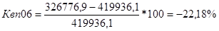 А1 ≥ П1, А2 ≥ П2, А3 ≤ П3, А4 ≤ П4, тобто баланс підприємства на кінець 2006 року не був абсолютно ліквідним. Розраховуємо узагальнюючий коефіцієнт ліквідності: