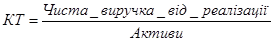 Судячи з динаміки даного показника, ефективність використання основних виробничих фондів протягом звітного періоду зросла. 2. Оборотність активів (коефіцієнт трансформації) Кт = ЧВ/Активи